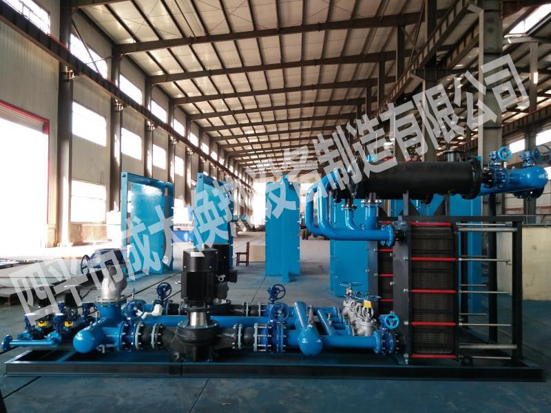 我公司換熱機組是集成了換熱器,循環(huán)泵,補水泵,溫度計,壓力表,各種傳感器,管路和閥門及工控于一體的成套區(qū)域供熱設備,并加裝了補水系統(tǒng),定壓系統(tǒng),水處理系統(tǒng),變頻流量控制系統(tǒng),熱量計及網(wǎng)絡控制通訊系統(tǒng)。是把大量用戶現(xiàn)場的水泵,閥門,儀表的選擇以及管道法蘭焊接的工作以及電氣控制的現(xiàn)場安裝調(diào)試工作,用我公司來完成,我公司生產(chǎn)的各規(guī)格機組,容量從 0.2MW 到 15MW ,采用標準模塊代設計,自由組合,以滿足用戶不同工況的要求,為用戶提供更合理更適用的機組,在滿足用戶使用的要求前提下,盡可能為用戶節(jié)省設備的投資。
