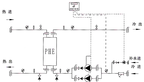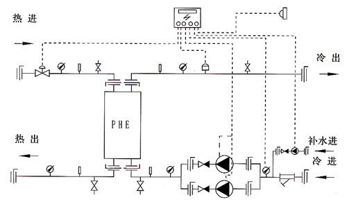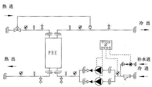 1.Y型過濾器   2.電動調(diào)節(jié)閥   3.壓力表   4.溫度表    5.蝶閥    6.除污器    7.循環(huán)泵