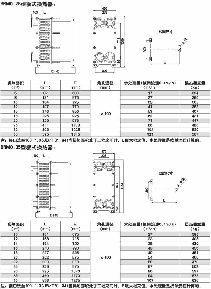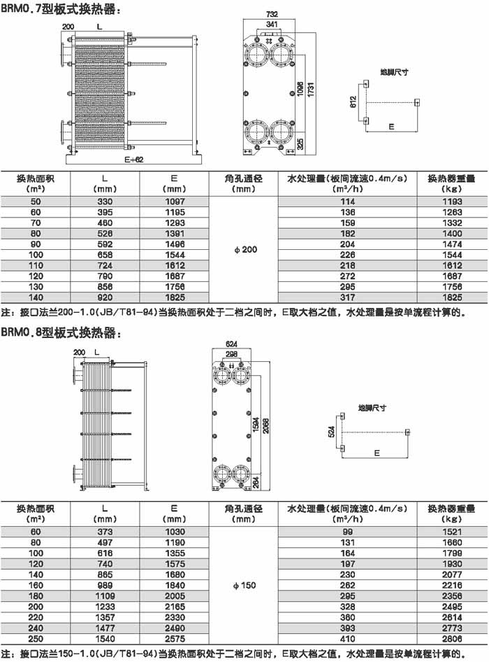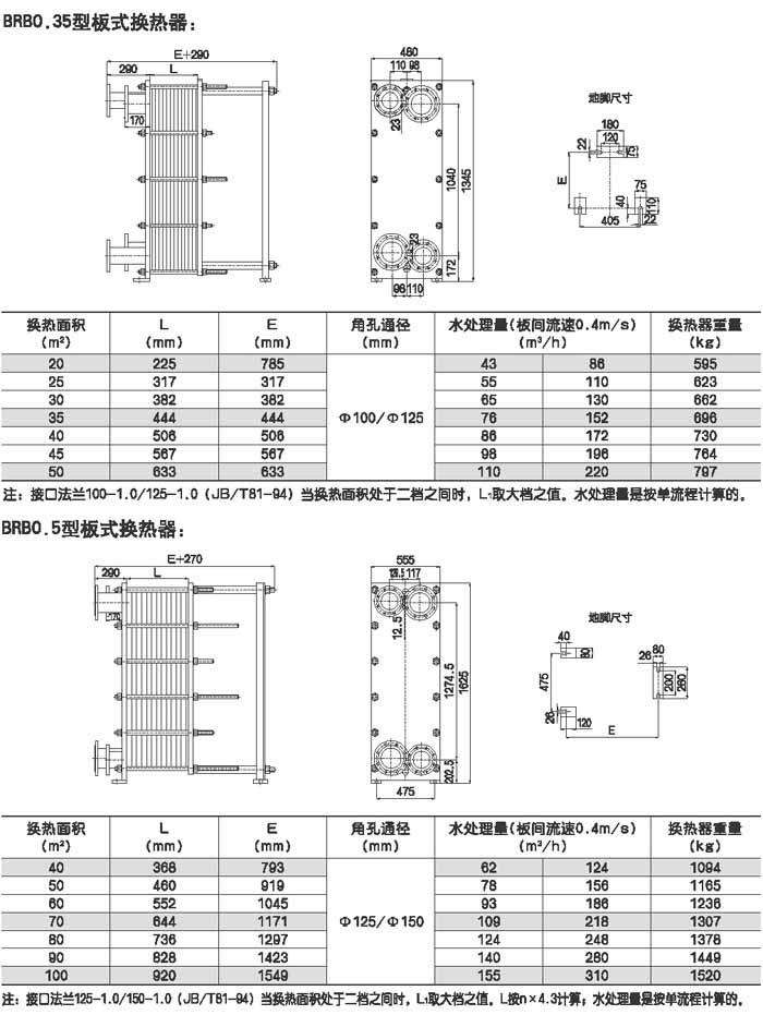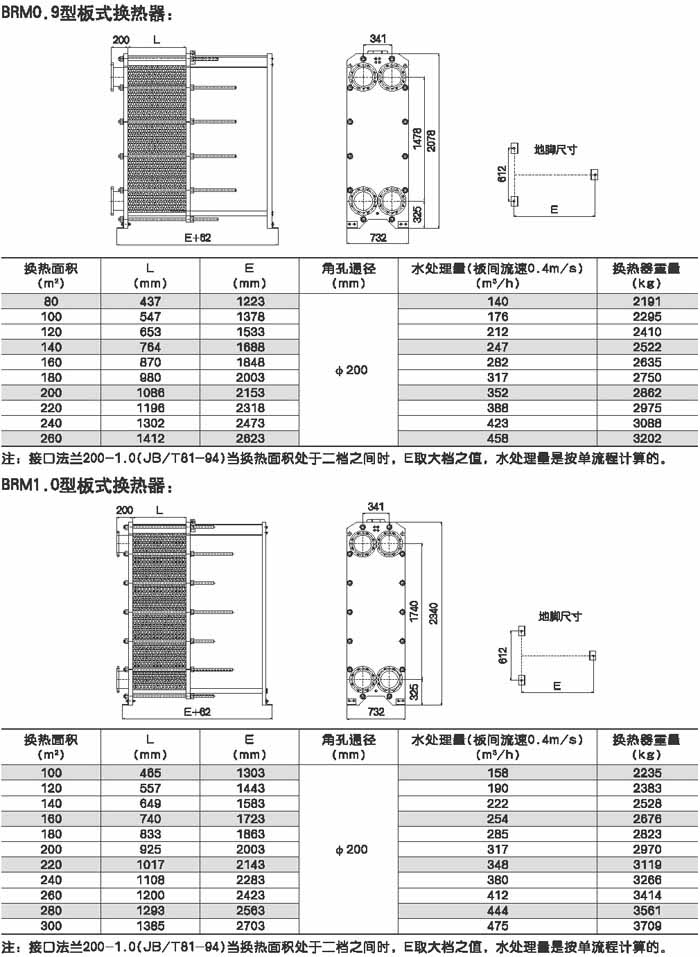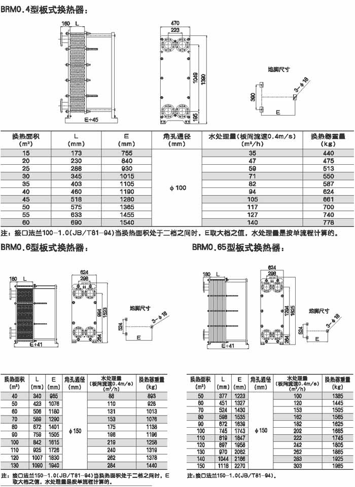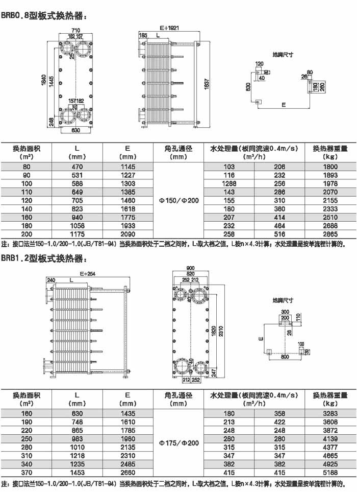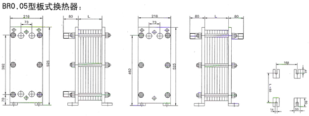 BRMO.0是指單片換熱板片的有效換熱面積為0.g平方米,其它型號(hào)的意義相同。選擇某種型號(hào)采用不同數(shù)量的換熱板片就可組裝成所需換熱面積的換熱器。